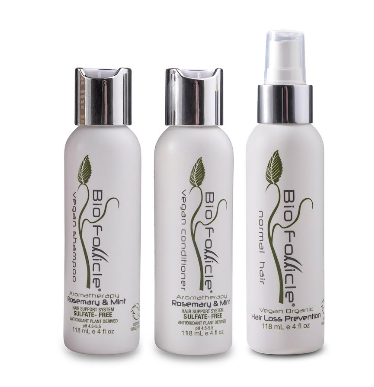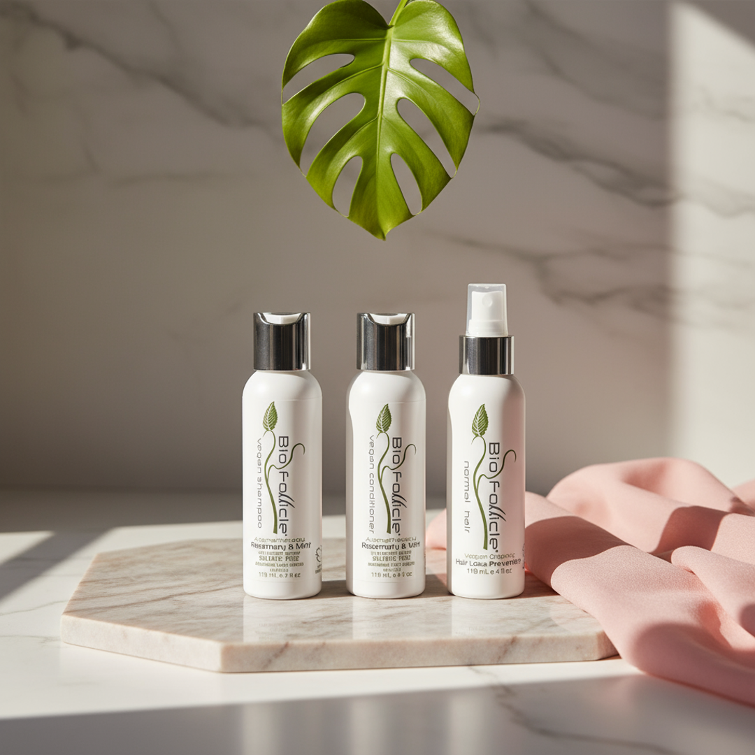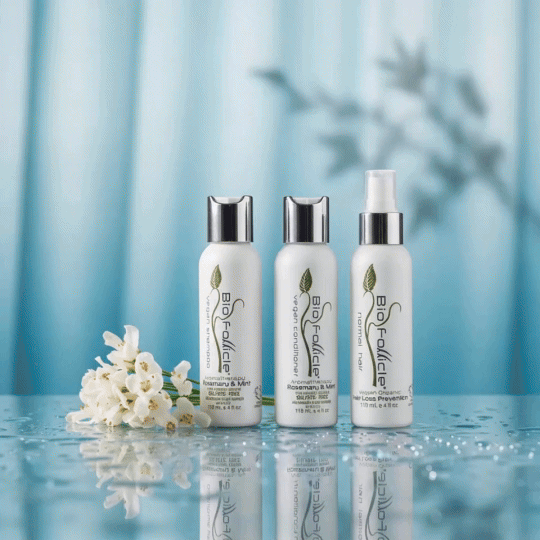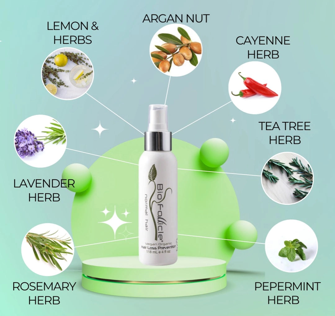 Finish your routine with the BioFollicle hair loss prevention spray. Apply directly to your scalp, focusing on areas of concern. This potent, science-backed vegan formula delivers targeted nutrients right to your follicles, actively working to reduce shedding and stimulate new, stronger hair growth. It's your secret weapon for visible results and lasting confidence.